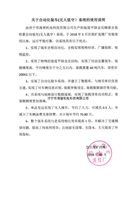 本產(chǎn)品一經(jīng)推出即獲得各大設(shè)計(jì)院及用戶的一致好評(píng),率先在棗礦集團(tuán)岱莊煤礦取得成功應(yīng)用,2018年9月受邀參加了《棗礦集團(tuán)煤場(chǎng)封閉暨儲(chǔ)裝運(yùn)系統(tǒng)智能化升級(jí)改造現(xiàn)場(chǎng)會(huì)》,智能裝車系統(tǒng)得到了充分肯定!我司憑借雄厚的加工制造實(shí)力及過(guò)硬的創(chuàng)新技術(shù)能力,勢(shì)必為運(yùn)輸稱重系統(tǒng)、快速計(jì)量裝車系統(tǒng)帶來(lái)又一次的技術(shù)創(chuàng)新變革。