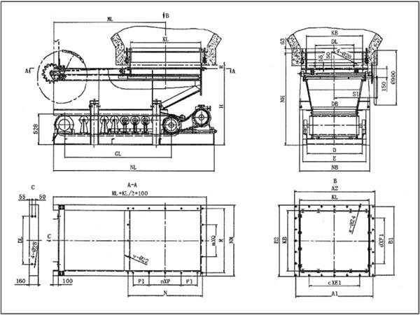 防砸閥門帶式(甲帶)給料機(jī)的閘門下增加了防砸閘門,當(dāng)料倉中的大塊物料落下通過給料機(jī)時,首先了落在防砸閘門上,防砸閘門在物料的重力作用下打開,使物料經(jīng)緩沖后落到甲帶上,甲帶對物料起再一次的緩沖作用。因此,防砸閥門帶式(甲帶)給料機(jī)有效防止了大塊物料砸傷甲帶、皮帶、托輥。
