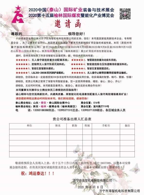 邀請函:2020中國(泰山)國際礦業(yè)裝備與技術(shù)展覽會